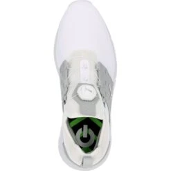 Ignite Articulate is packed with performance features to keep your feet stable, supported and comfortable. Features of the upper shoe include water protection with a 1 year waterproof warranty and a DISC system that is equipped with a micro-adjusting dial that quickly and easily secures your foot for a locked in, custom fit. The EXO Shell at the upper is engineered with mesh that is fused underneath a TPU film that provides support. In addition, the upper features a PWRFrame and PWRCage, both offering stability and support as well. The TPU frame is placed in high stress areas at the upper while the TPU saddle offers midfoot support with webbing straps. Step-in comfort is provided with a Pro-Fit insole and mesh bootie construction. The midsole is constructed with Ignite Foam for energy return, responsive comfort, and stable cushioning. The outsole is constructed with Pro-Form TPU, Hex Traction Lugs, and Tornado cleats, providing durability, traction, and exceptional grip.