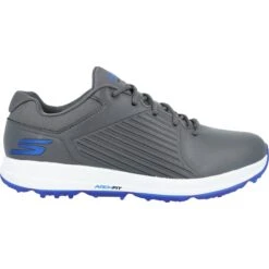 Skechers Go Golf Elite handles the course with supportive comfort and smooth styling. It is waterproof and features a quarter embossed synthetic upper. Elite 5 – GF has a padded collar and tongue, a removable Arch Fit insole and lightweight ULTRA FLIGHT cushioning, all to help with support, comfort, and easy motion when you’re on the go. The outsole is equipped with ¼ inch cleats as well as traction patterns, keeping the foot grounded during each golf swing.